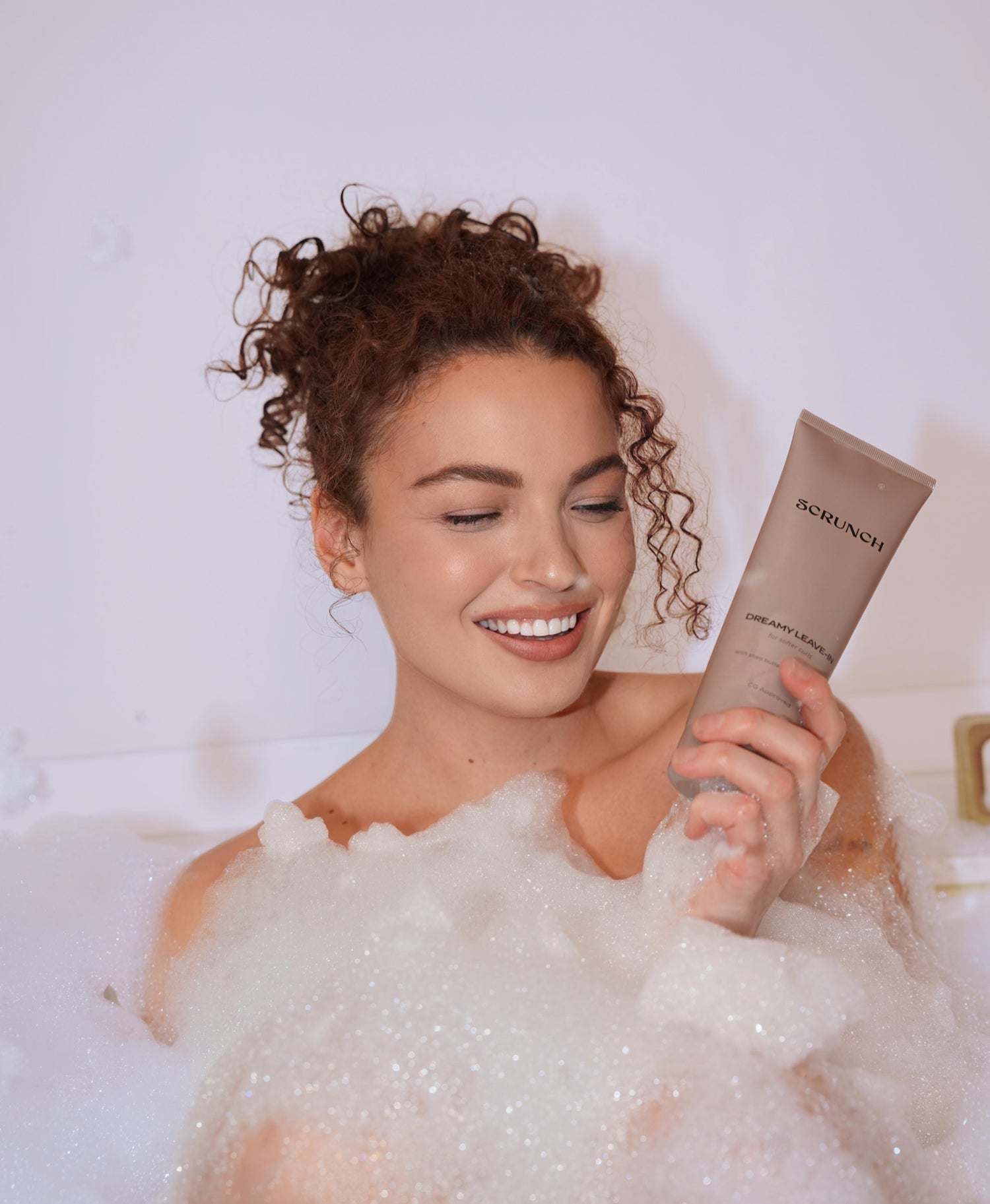 Apply the product to freshly washed and conditioned hair, evenly distributing it from roots to ends. Use your fingers or a detangling brush to work it through your hair. For thicker or curlier textures, apply in sections for best results. Continue your routine with your favorite SCRUNCH products.